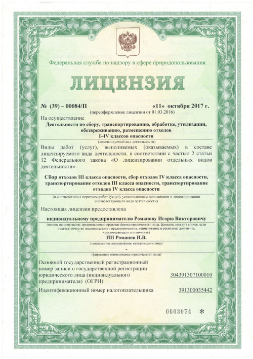 ИП Романов И. В. лицензированный перевозчик в Калининградской области и действует на рынке услуг официально с 1996 года.